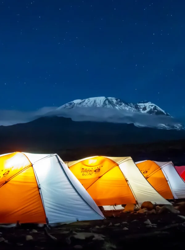 The trail steepens as you ascend out of the rainforest into the heath and moorland zone, marked by dramatic, open landscapes dotted with giant lobelias and groundsels. Views of Kilimanjaro’s western glaciers and the plateau ahead begin to emerge, giving a glimpse of the grandeur to come. After several hours of steady uphill trekking, you reach Shira 1 Camp, where the cool breeze and expansive views of the Shira Plateau offer a spectacular sunset. The night sky here is clear and full of stars a prelude to the high-altitude adventure.