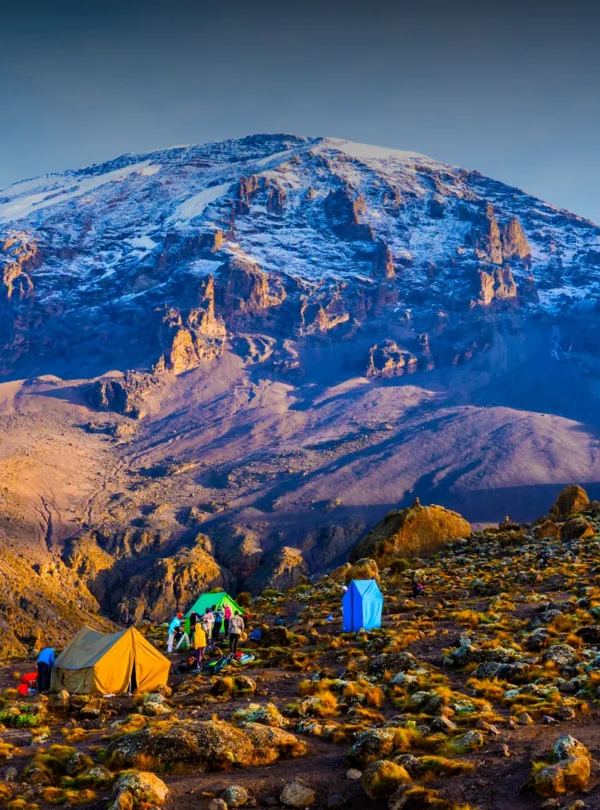 From Karanga, the trail steadily climbs through a stark, alpine desert. The vegetation becomes sparse, replaced by rocky scree and hardy shrubs. The air is thinner, temperatures drop, and hikers start to feel the high-altitude effects. After 3–4 hours, you reach Barafu Camp, the base for your summit attempt. The camp offers a barren, moon-like landscape, and climbers prepare early for the midnight ascent. This is a day for rest, hydration, and acclimatization.